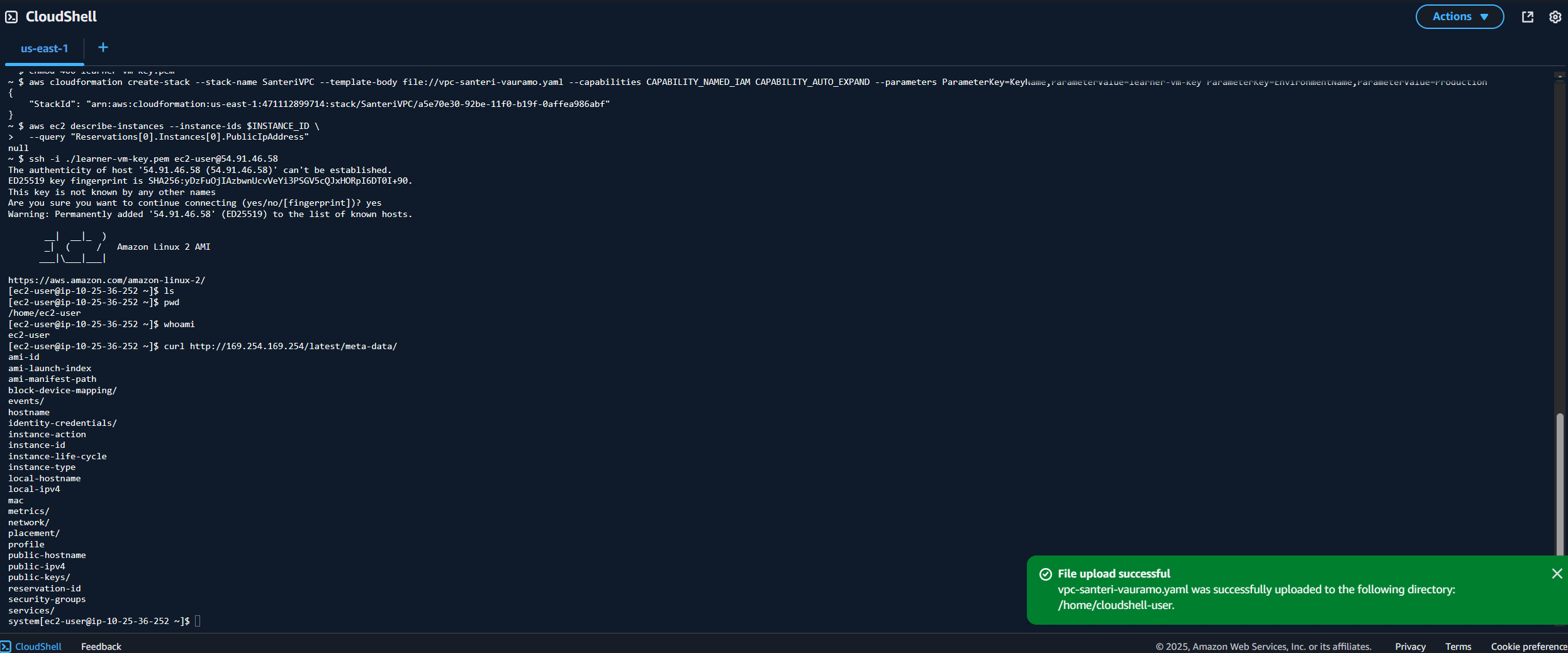ssh -i ./learner-vm-key.pem ec2-user@54.91.46.58