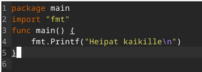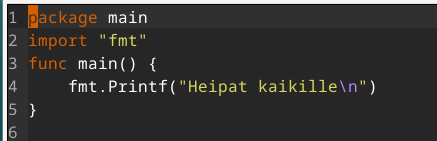 Kokeilen luoda go-tiedoston micro heippis.go, tiedostoon kirjoitan: