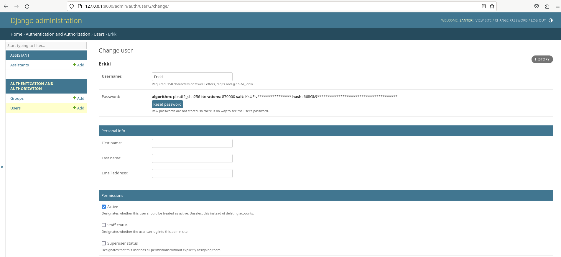 - Asenna omalle käyttäjällesi Django-kehitysympäristö