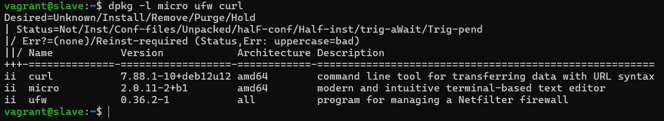 Tämä tiedosto ajettuna pitää huolen, että slavelle on asennettu ohjelmat:
