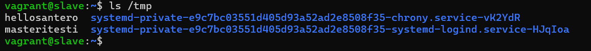 Sitten vielä slavella tarkistamaan, että tiedosto hellosantero löytyy tmp/ kansiosta